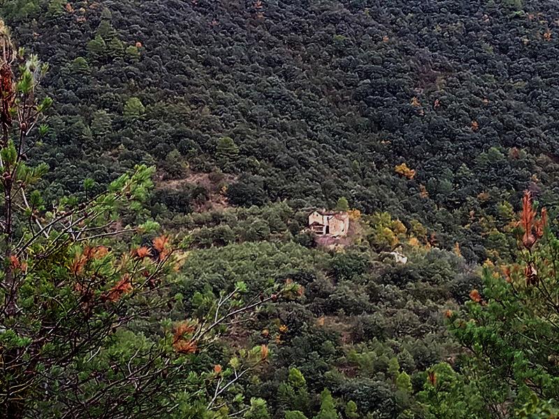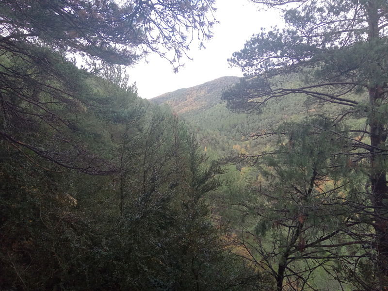 caixigos, moixeras) . Por supuesto, en el sotobosque el rey es el buixo (Buxus Sampervirens). En los tramos en los que el bosque deja algún claro podemos ver el la ladera de enfrente las casas y la ermita de San Fertús.